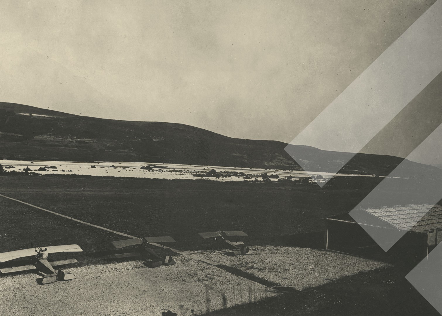 I panjohur, 1917, Avionë gjuajtës në fushën e aviacionit Penkovë, Vlorë, print në letër, 11 x 16 cm.