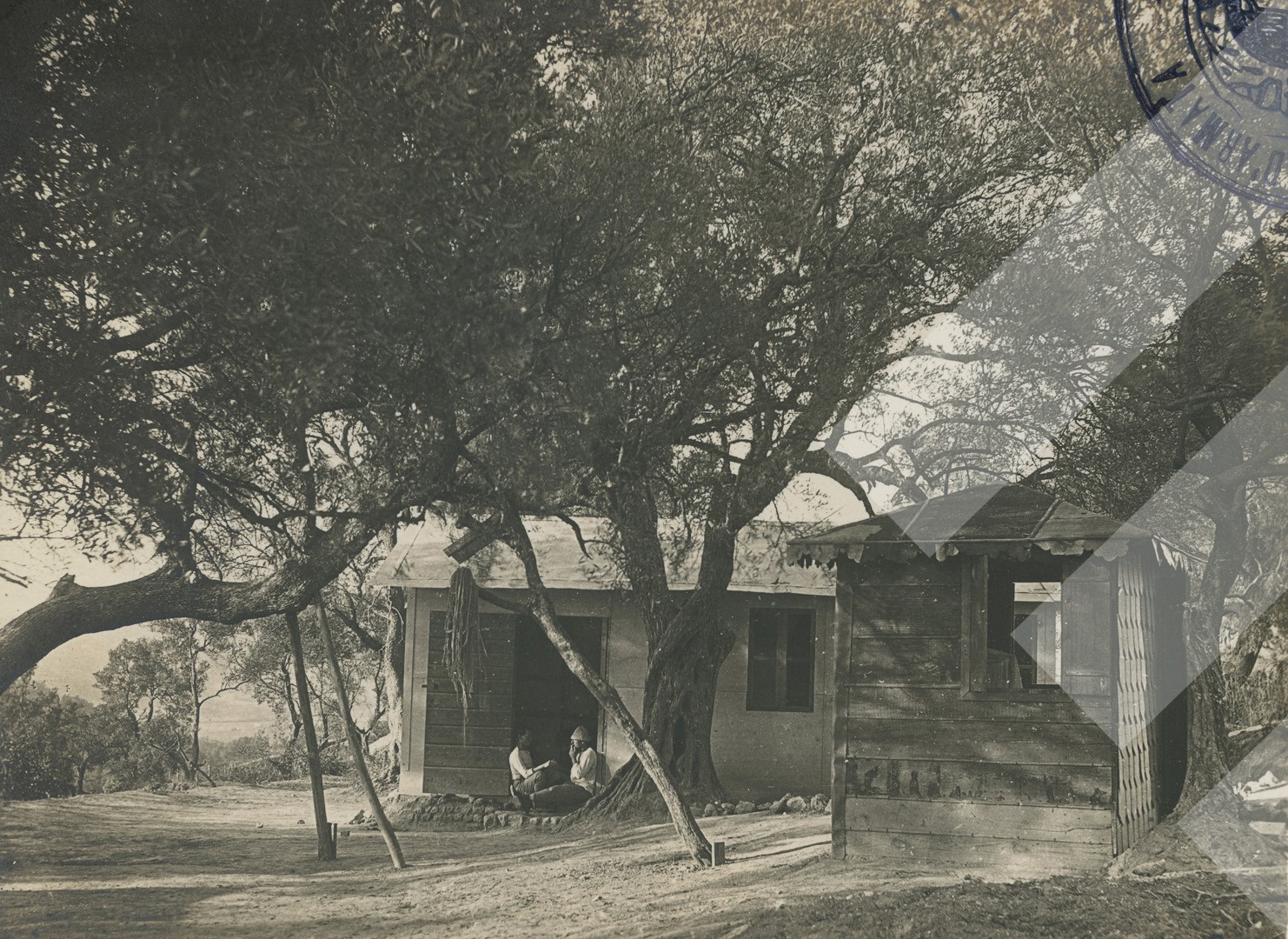 I panjohur , "", 1918 , , Konstruksione provizore te ushtrisë italiane në ullishtet e Vlorës, , Print në letër , 8 x 11 cm