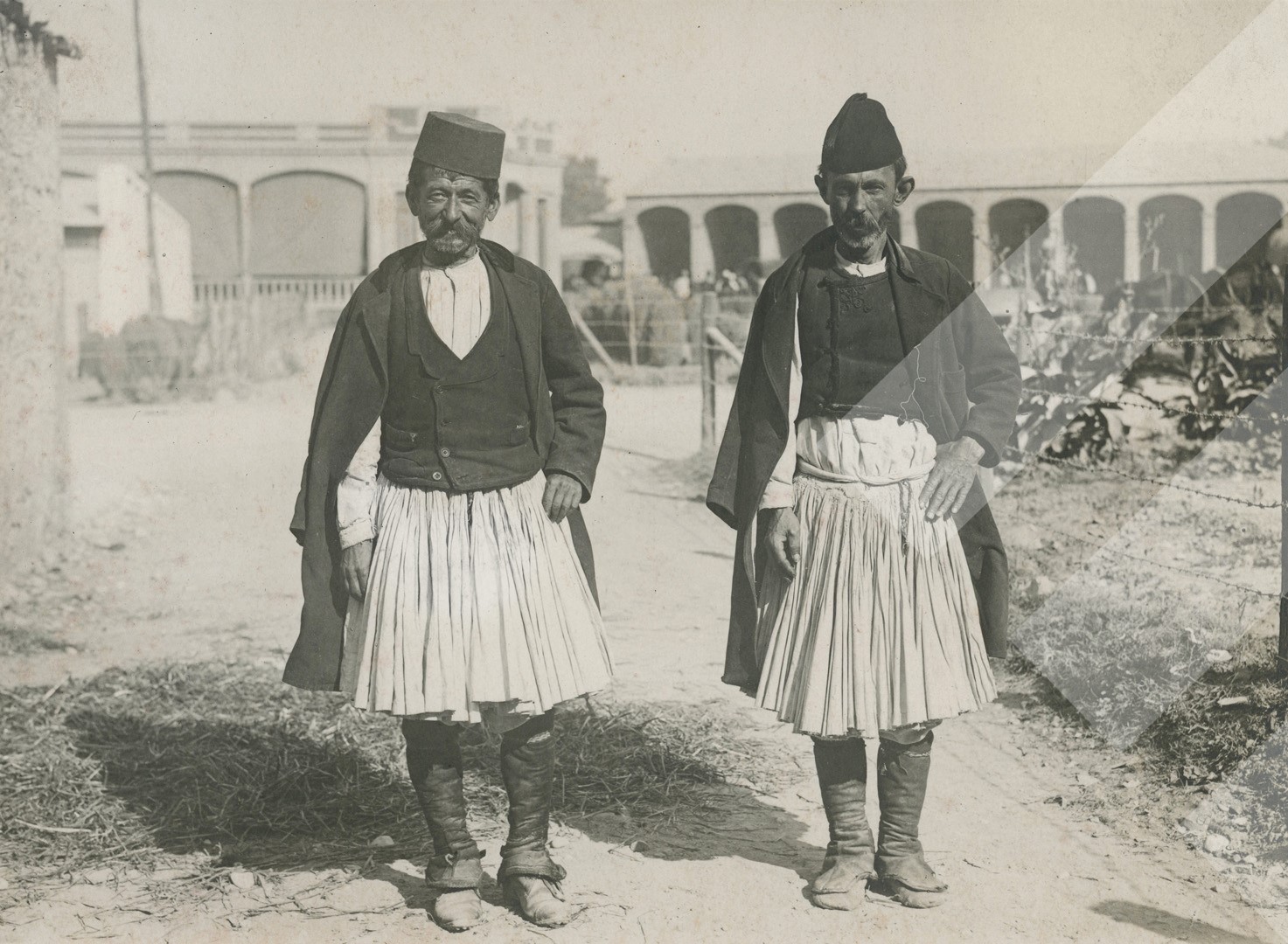 I panjohur , "", 1918 , , Dy burra labë përpara merkatës së Vlorës, , Print në letër , 8 x 11 cm