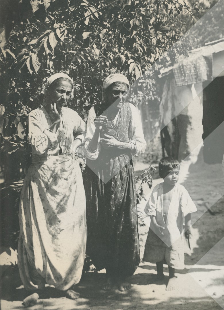 I panjohur , "", 1918 , , Dy gra dhe një fëmijë para kasolles, , Print në letër , 8 x 11 cm
