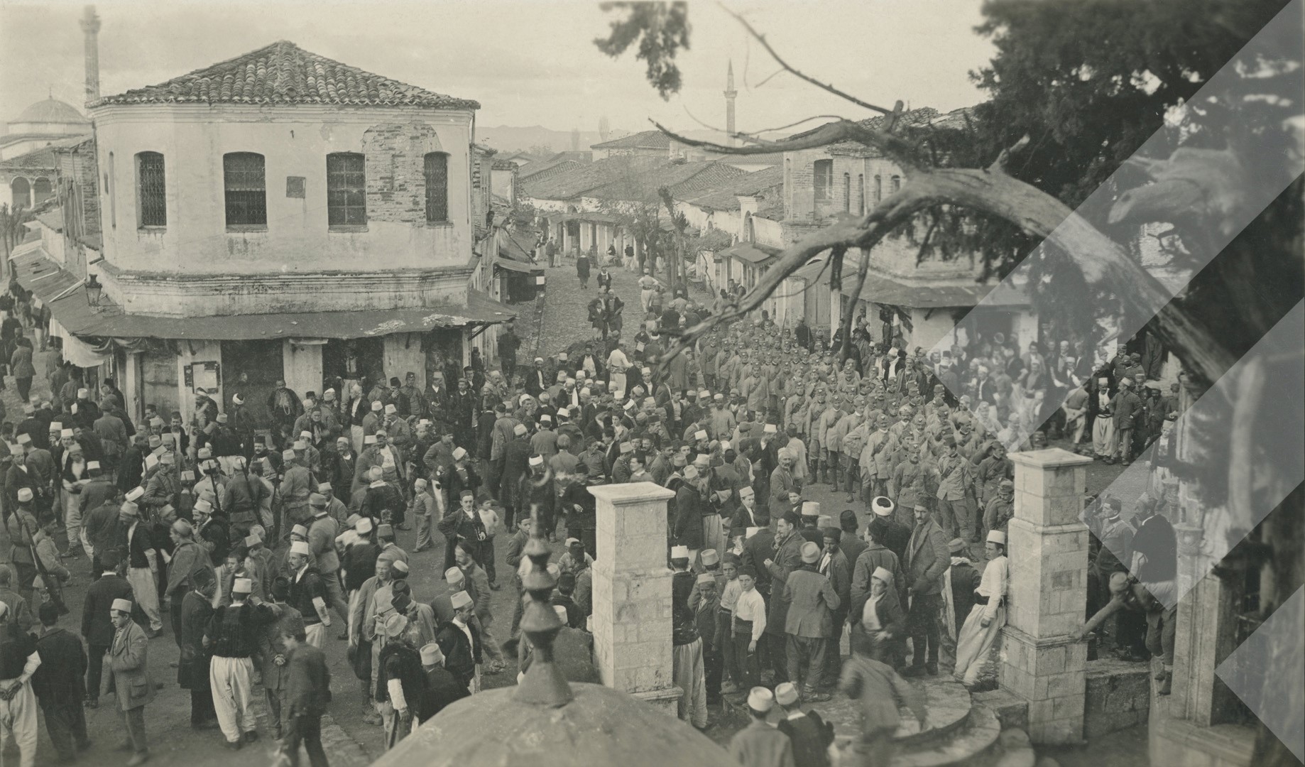 O.M.Salisbury, 28 Nëntor 1919, Dita e Pavarësisë në Tiranë. Parada e Shkollës së Oficerëve, e drejtuar nga italianët për detyra policore në vend, print në letër, 9 x 14 cm.