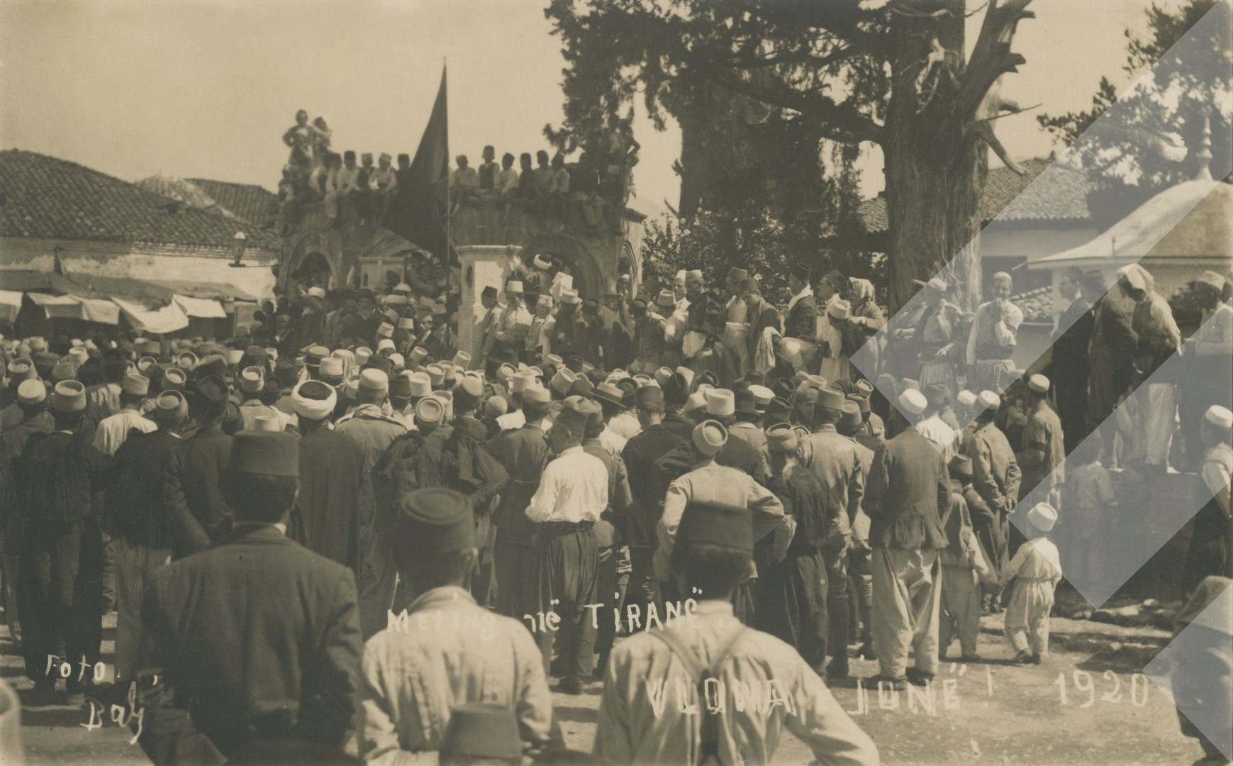Ymer Bali, 1920, Tubim në Tiranë për luftën e Vlorës, print në letër, 9 x 14 cm.