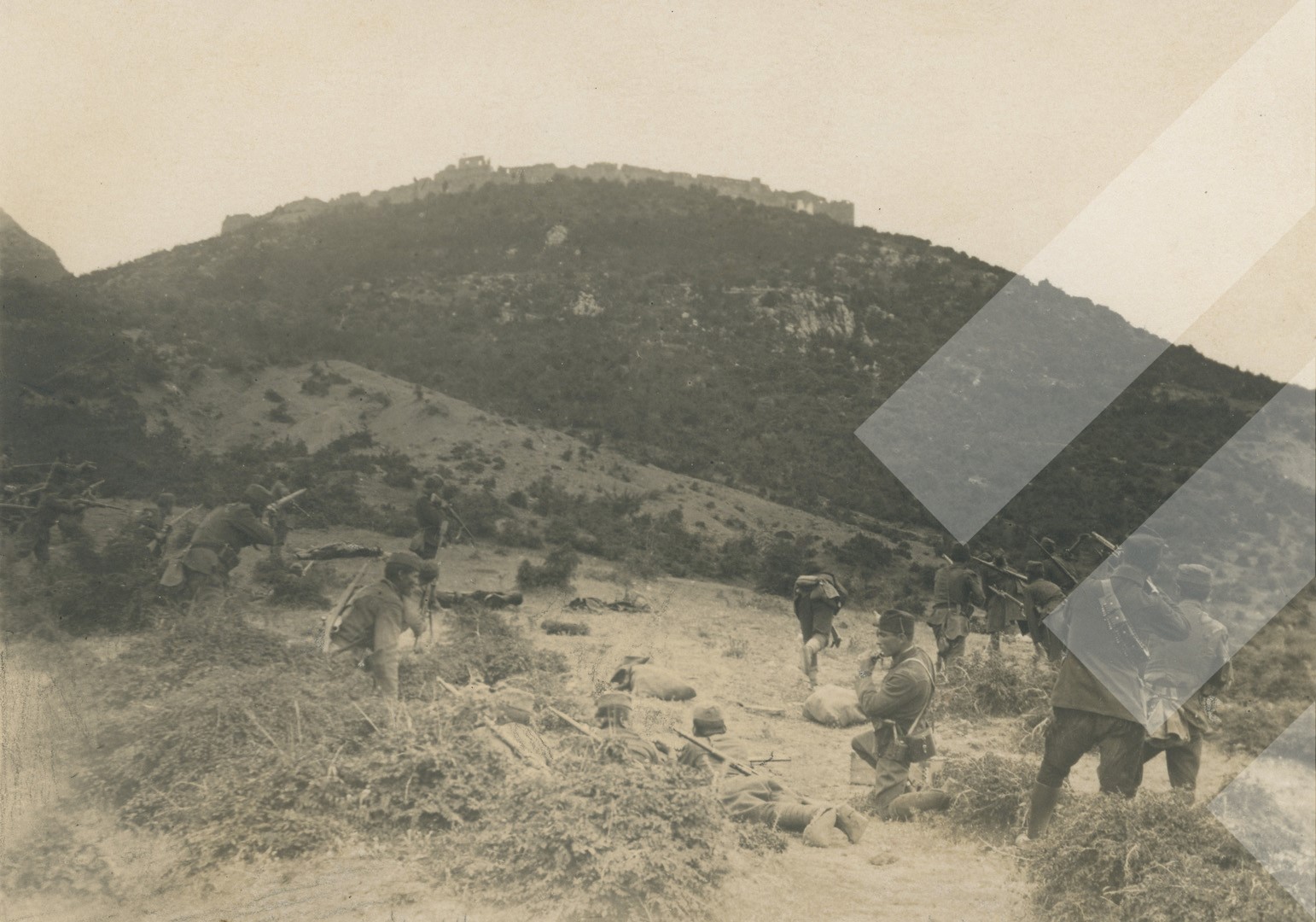 Kol Maca 1921, Forca qeveritare në luftime me kryengritës në Lezhë, më 1921, print në letër, 9 x 14 cm.