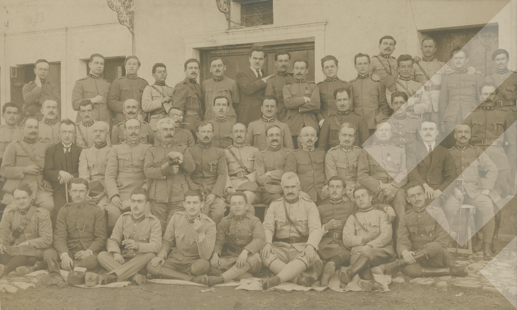 Kol Maca, 1922, Një grup oficerësh në përvjetorin e tetë të ardhjes së Princ Vidit në Durrës, print në letër, 9 x 14 cm.