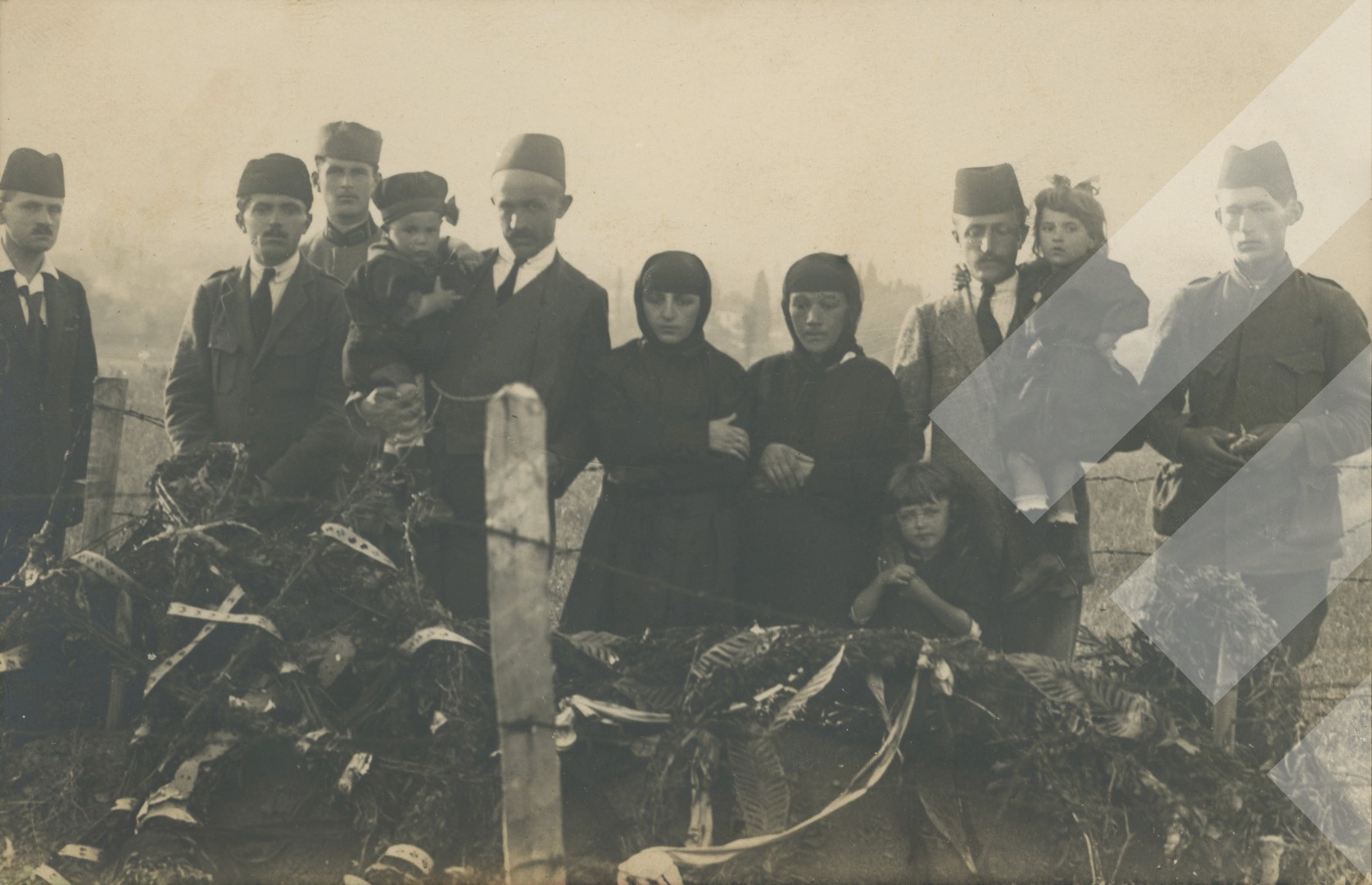 Kol Maca, 1922, Familjarë të Majorit Meleq Frashëri pranë varrit të tij, print në letër, 9 x 14 cm.