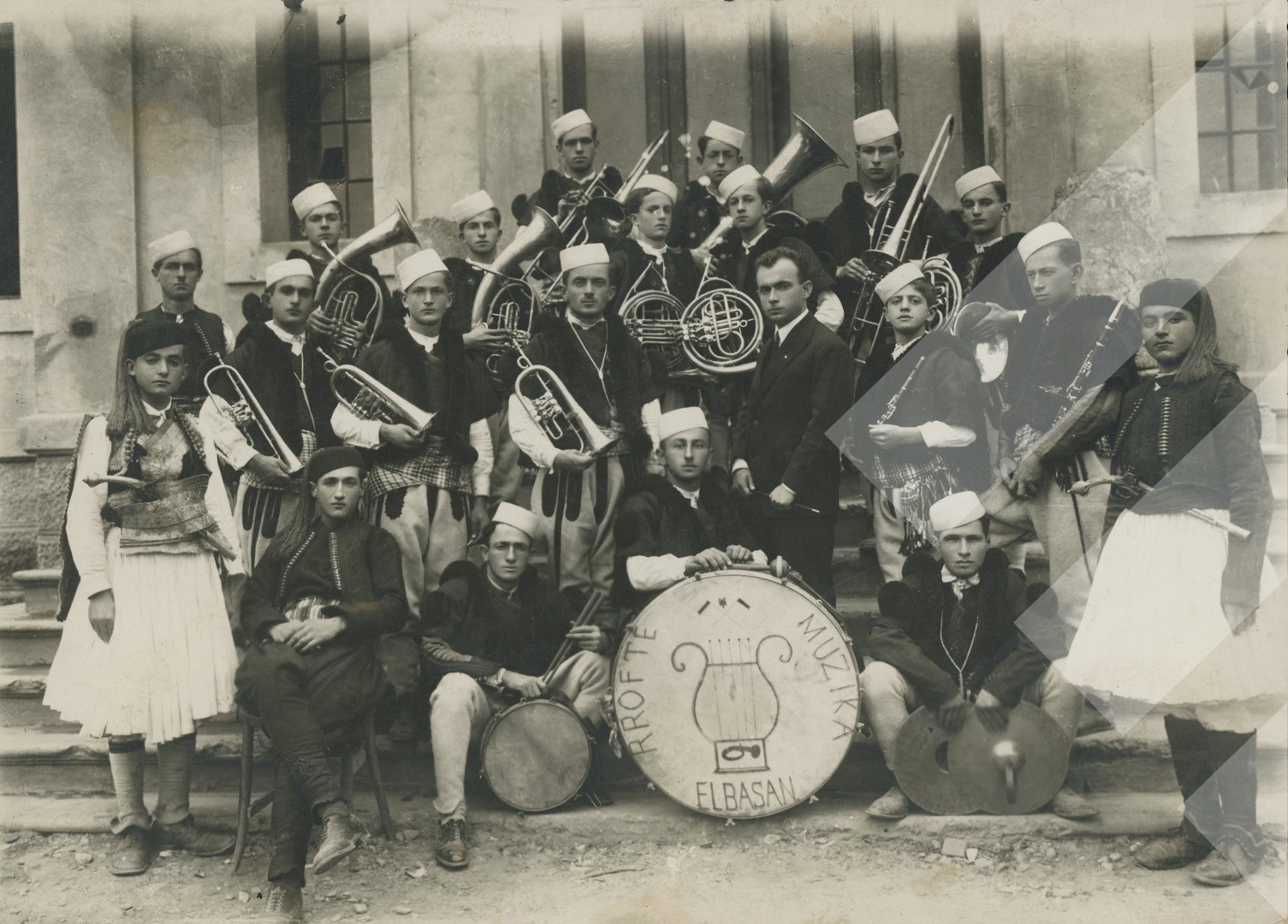 I panjohur, rreth 1925-1927, Bandë muzikore e qytetit të Elbasanit, print në letër, 13 x 17 cm.