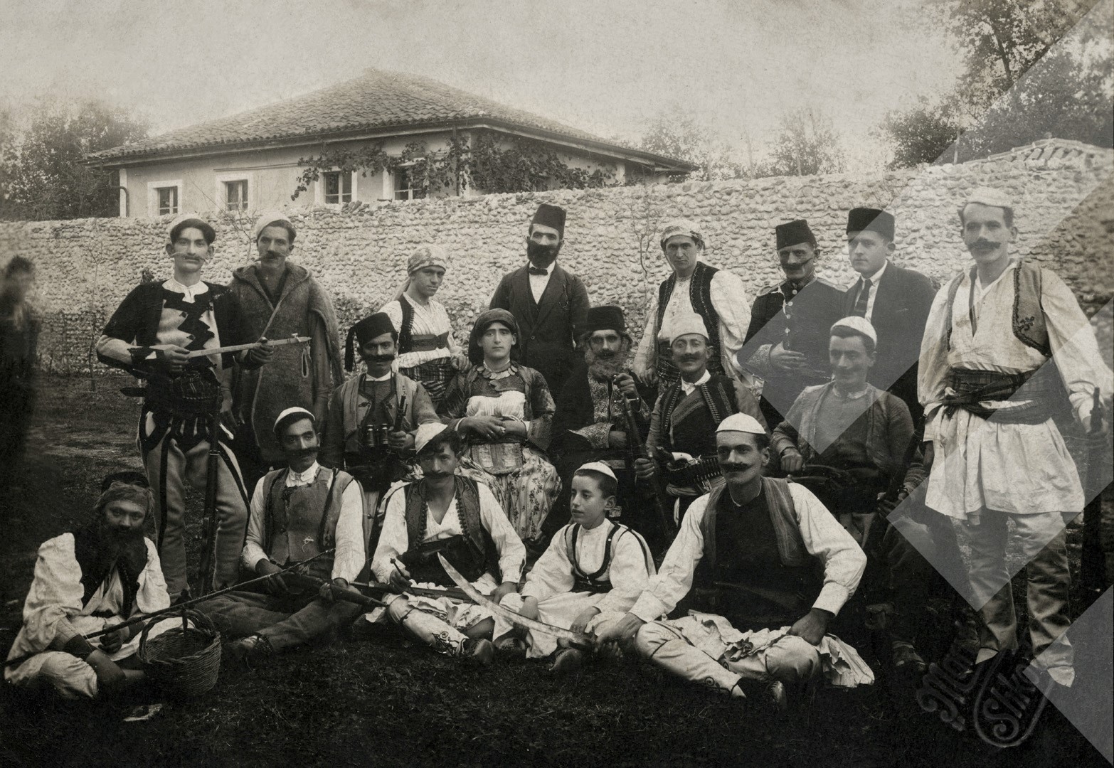Kel Marubi, 1924, Aktorë të tragjedisë "Vetëurdhënimi i Ali Pashë Tepelenës", shfaqur nga "Shoqnija Bogdani" më 27-28 nëntor 1924 në Shkodër, print në letër, 10 x 15 cm.