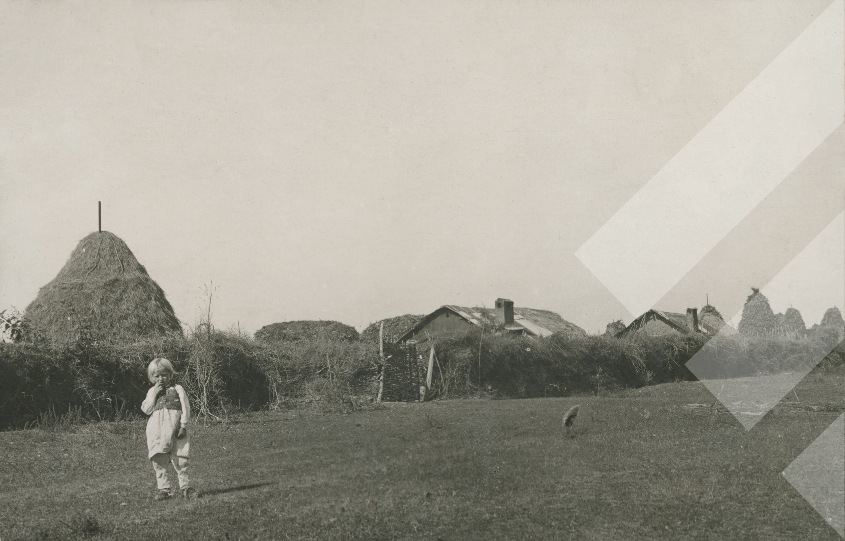 Kol Maca, 1927, Fshati i refugjatëve kosovarë në Mamurras, print në letër, 9 x 14 cm.