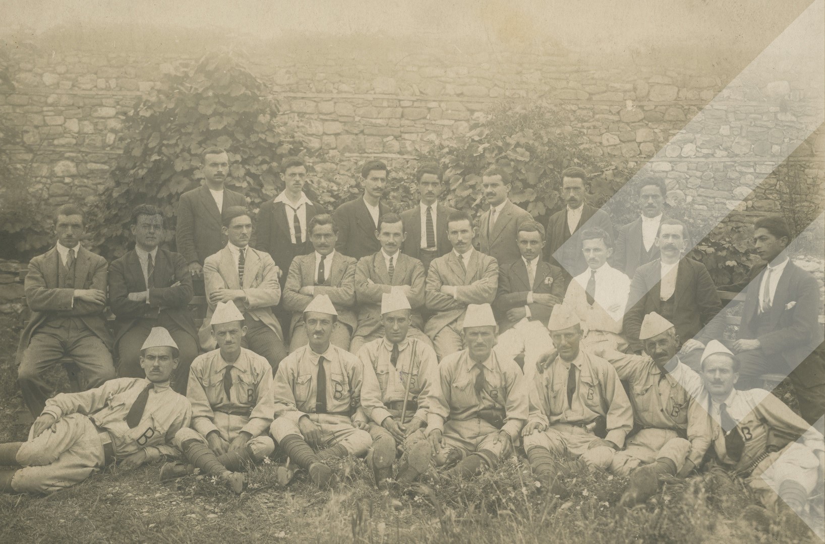 Musa Haxhi Ymeri, 1924, Grupi i organizatës "Bashkimi", dega e Elbasanit, e formuar në vitin 1924. (Rreshti poshtë: përfaqësuesit e Tiranës. Sipër në dy radhë: anëtarët e Elbasanit), print në letër, 13 x 18 cm.