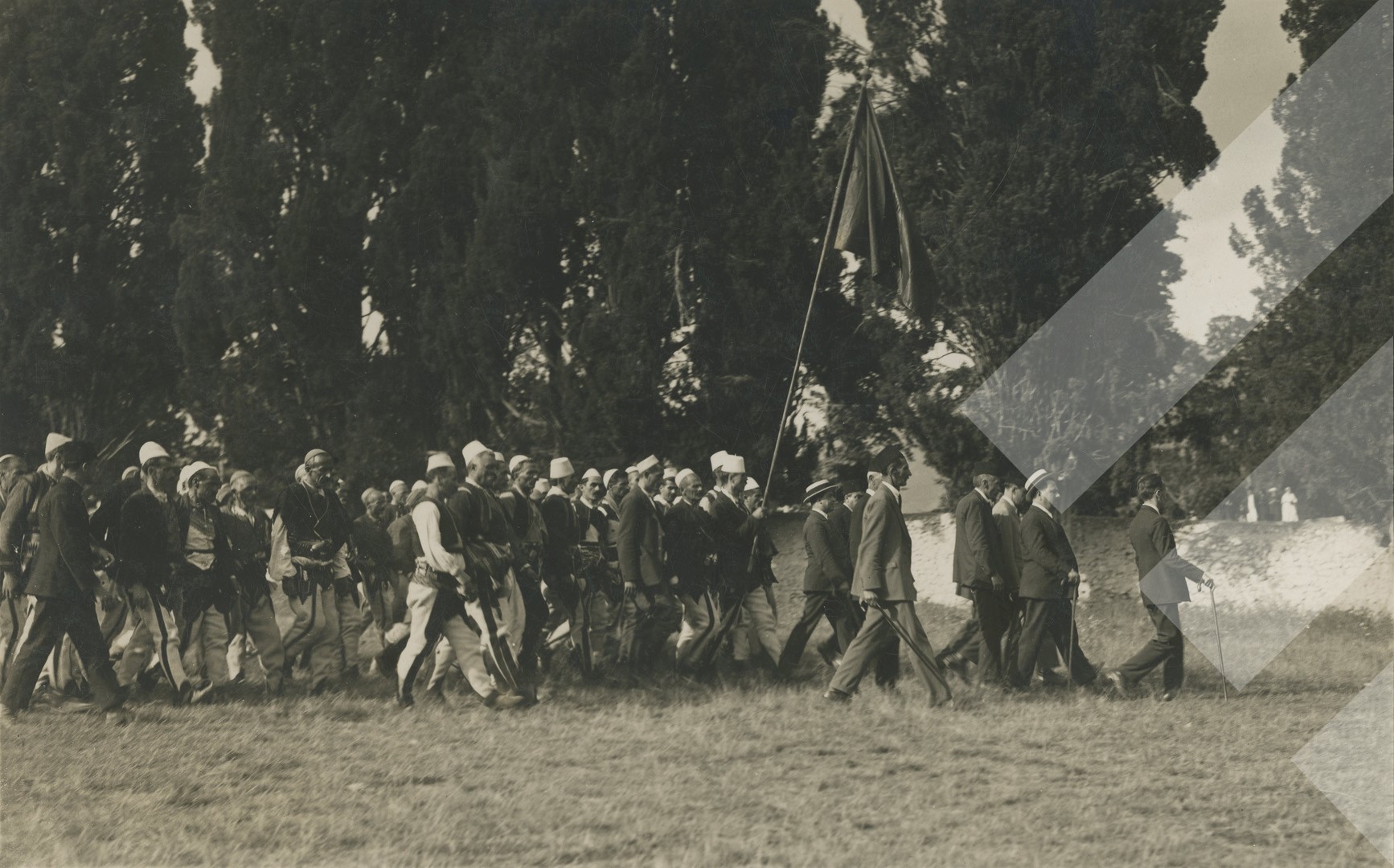 I panjohur, 1925, Paria dhe Bajraktarët e Malësive të mbledhur në Tiranë, përpara betimit ndaj Kryetarit të Republikës Ahmet Zogu, print në letër, 9 x 14 cm.