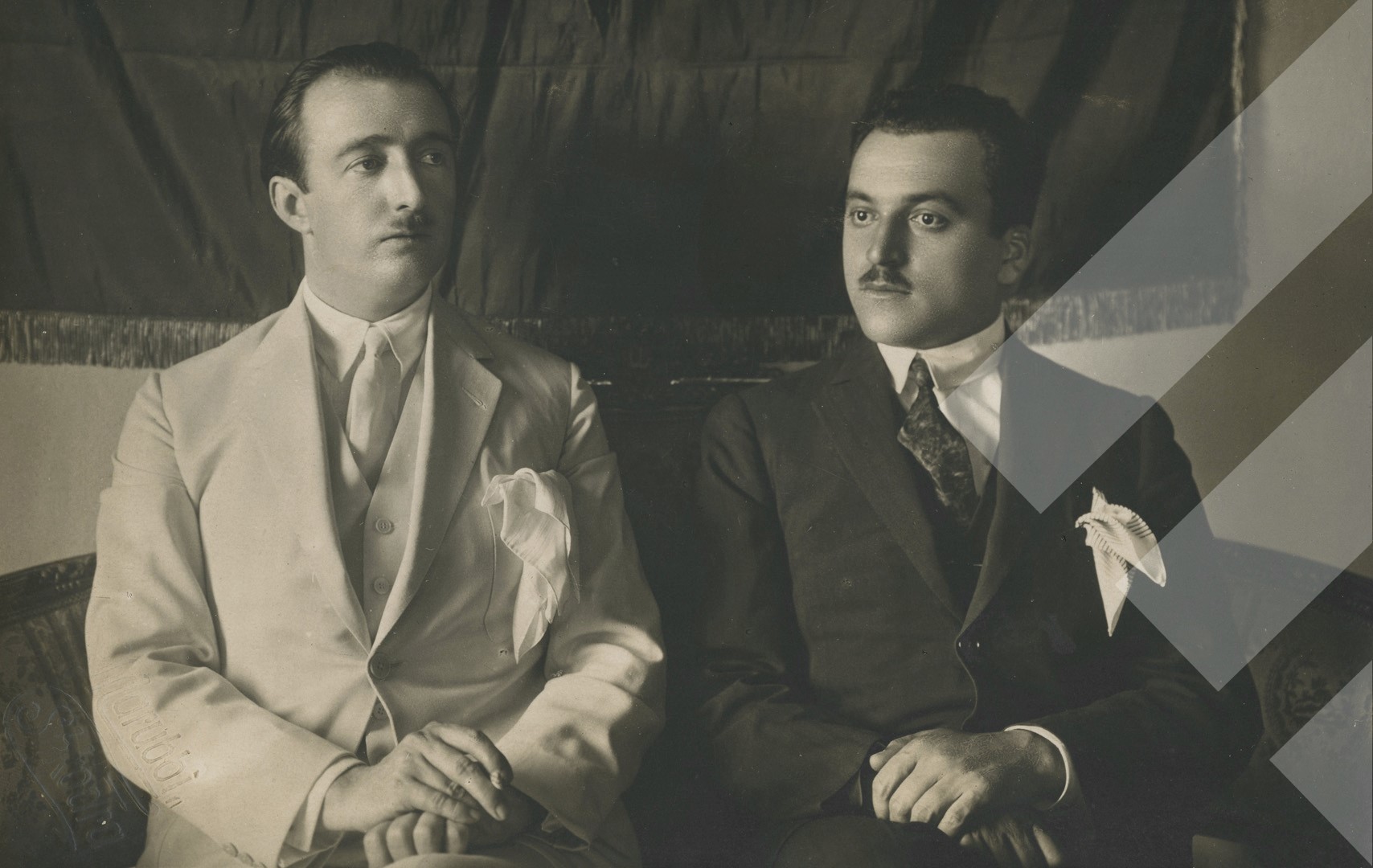 Kel Marubi, rreth 1925-1927, Ahmet Zogu, Presidenti i Republikës dhe Ceno Bej Kryeziu, ministër i Brendshëm, print në letër, 9 x 14 cm.