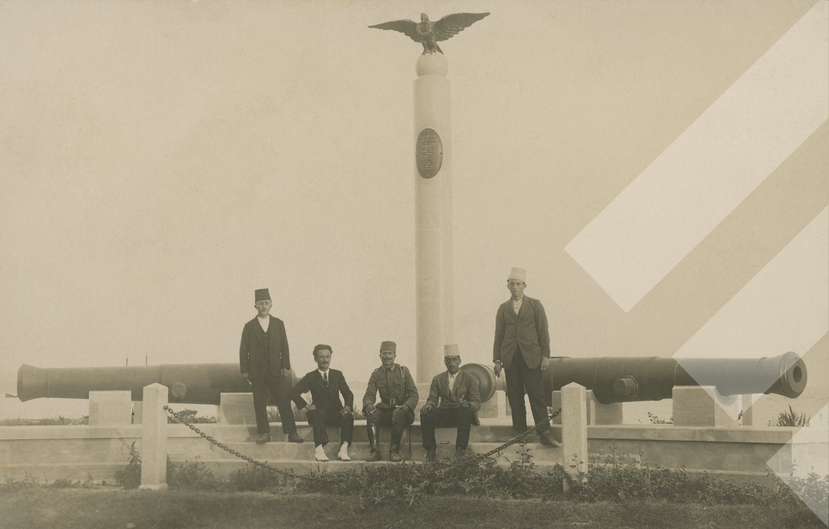 I panjohur, rreth 1925, Para monumentit kushtuar kolonelit holandez Lodewijk Thomson në Durrës, print në letër, 9 x 14 cm.