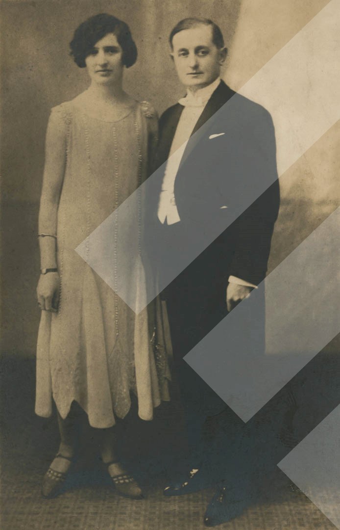 I panjohur, rreth 1925-1930, Ali Asllani me bashkëshorten, Qanie, print në letër, 8 x 13 cm.