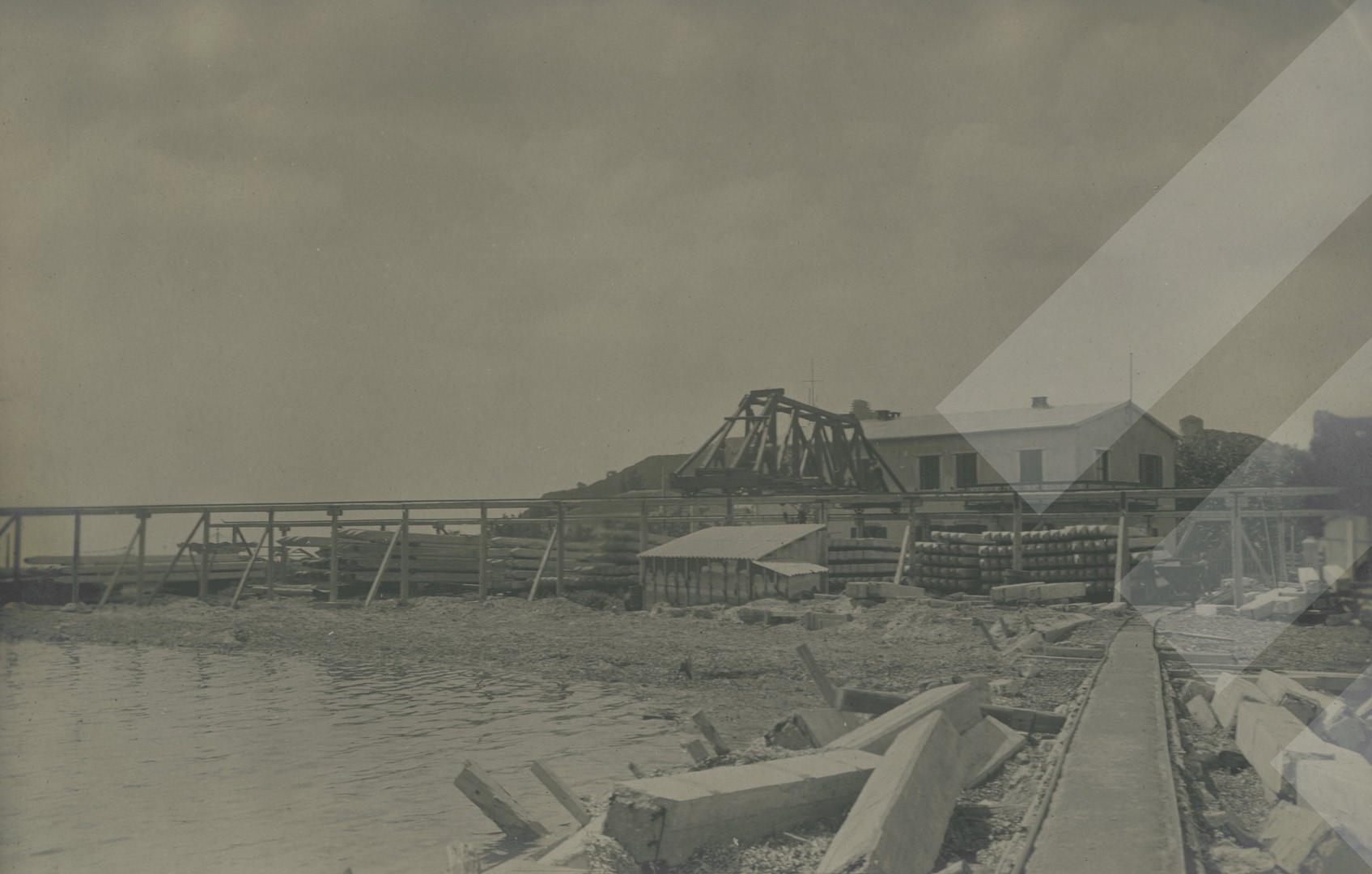 I panjohur , "", 1929 , , Pamje nga kantieri i materialeve të parafabrikuara, , print në letër , 9 x 14 cm