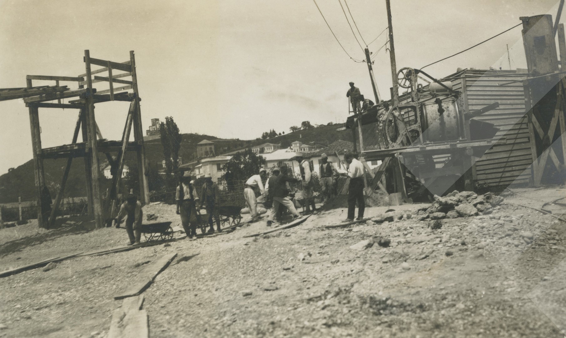 I panjohur , "", 1929 , , Puntorë duke punuar në kantier, , print në letër , 9 x 14 cm