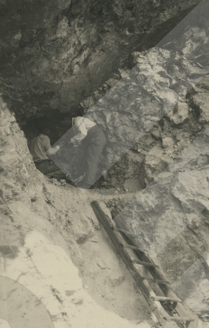 I panjohur , "", 1930 , , Vendosja e eksplozivit në guroren e Shëngjinit, , print në letër , 4 x 6 cm