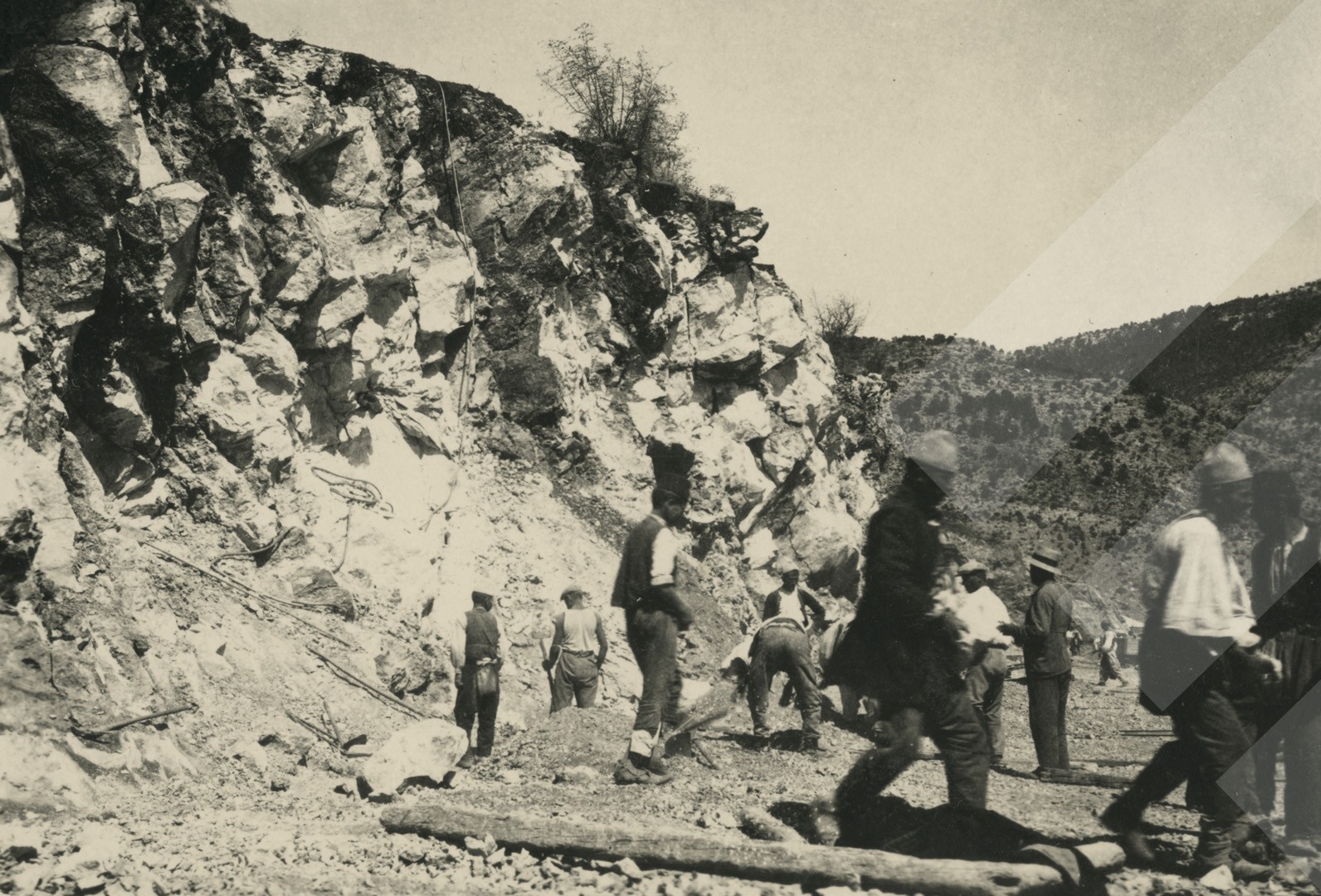 I panjohur , "", 1930 , , Transportimi i mateiralit nga gurorja e Shëngjinit, , print në letër , 6 x 8 cm