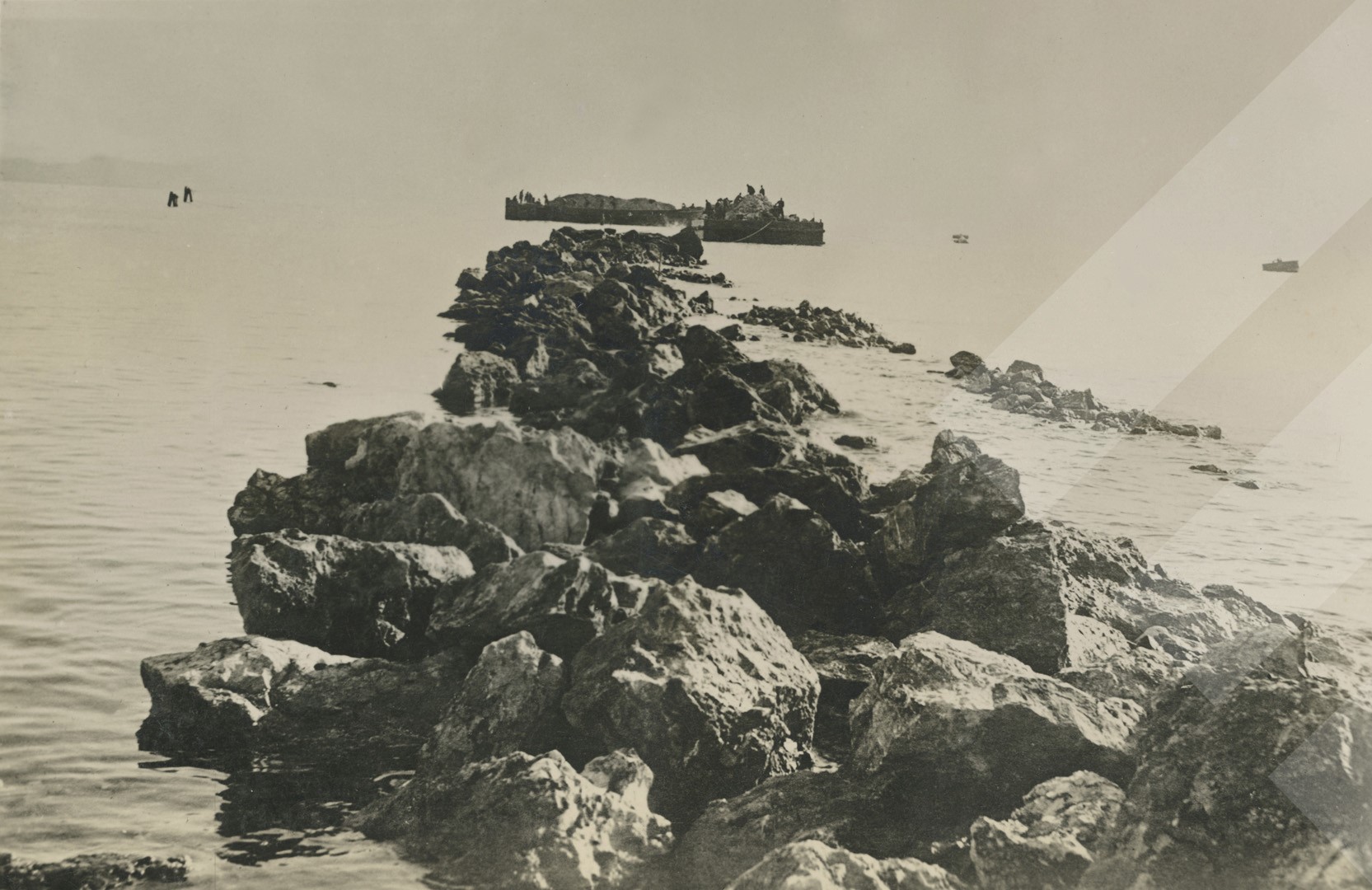 I panjohur , "", 1929 , , Dallgëpritsja e portit të Durrësit në ndërtim, , print në letër , 9 x 14 cm