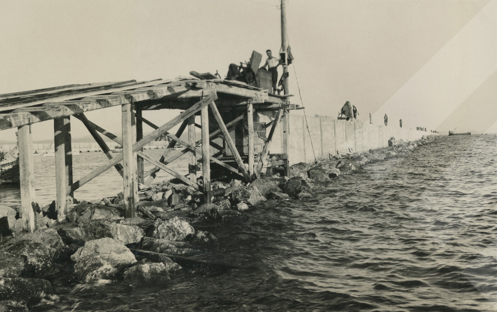 I panjohur , "", 1930 , , Ndërtimi i molit perëndimor, , print në letër , 9 x 14 cm