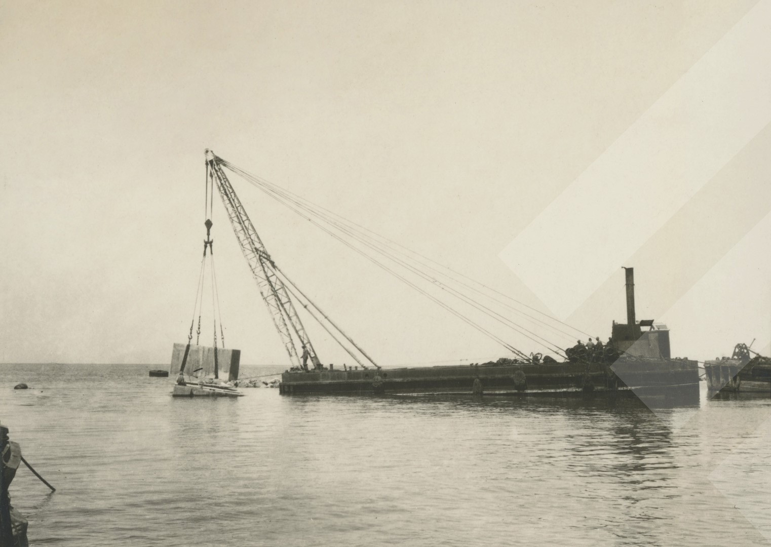 I panjohur , "", 1931 , , Montimi i blloqeve masivë të betonit, , print në letër , 6 x 8 cm