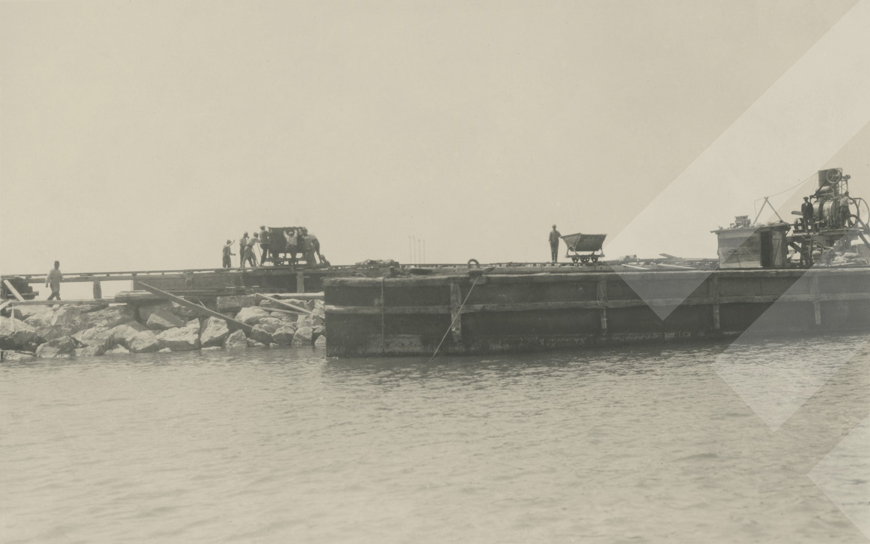 I panjohur , "", 1932 , , Betonimi i molit të jugut, , print në letër , 9 x 14 cm
