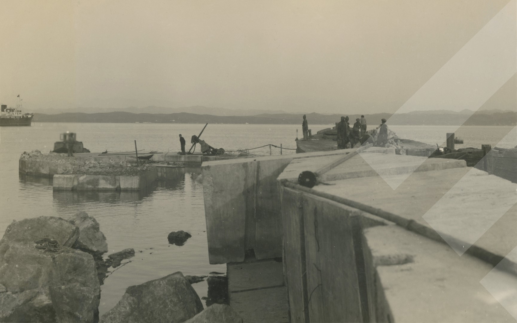 I panjohur , "", 1932 , , Shkarkimi i materialit në molin e jugut, , print në letër , 9 x 12 cm