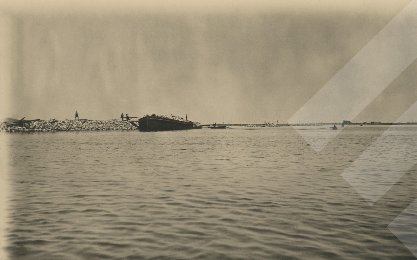 I panjohur , "", 1930 , , Hedhja e gurëve në molin perëndimor, , print në letër , 9 x 14 cm