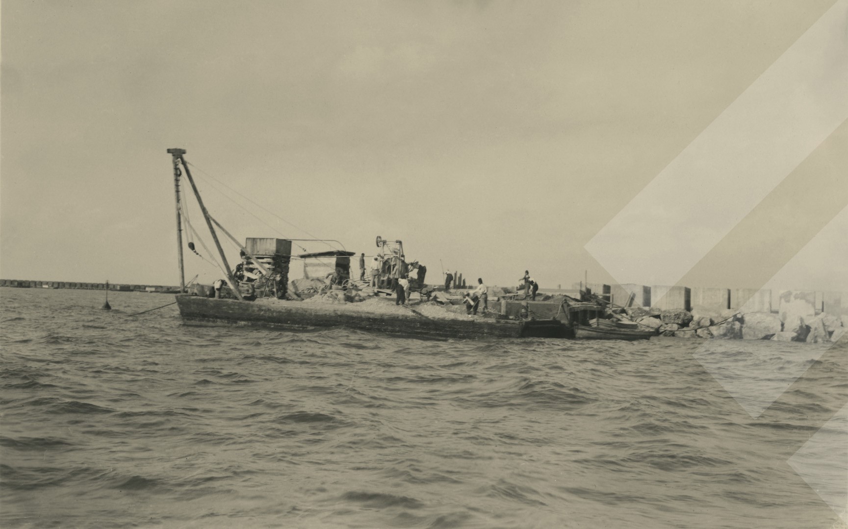 I panjohur , "", 1932 , , Biga duke shkarkuar material ndërtimi, , print në letër , 9 x 14 cm