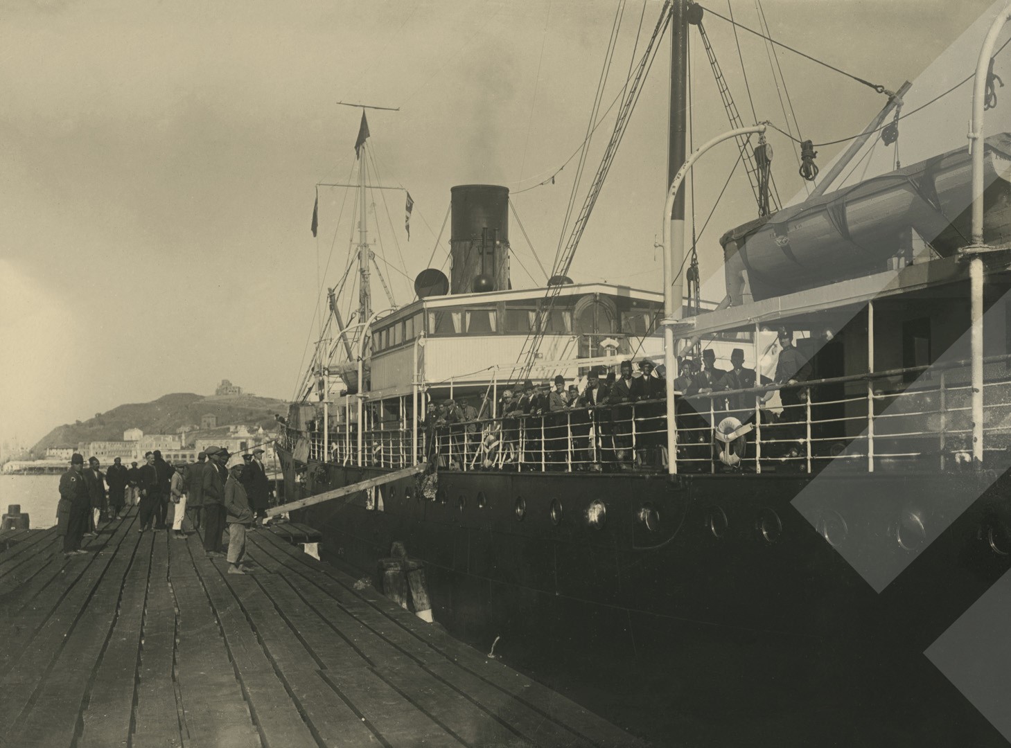 I panjohur , "", 1929 , , Mbëritja në mol e anijes "Lussino" nga Bari, , print në letër , 12 x 16 cm