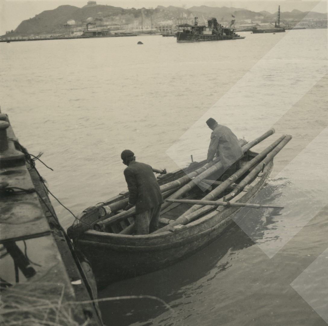 I panjohur , "", 1932 , , Transporti i tubave për shpërthimin e mbetjeve të piroskafit "Lokrum", , print në letër , 6 x 6 cm