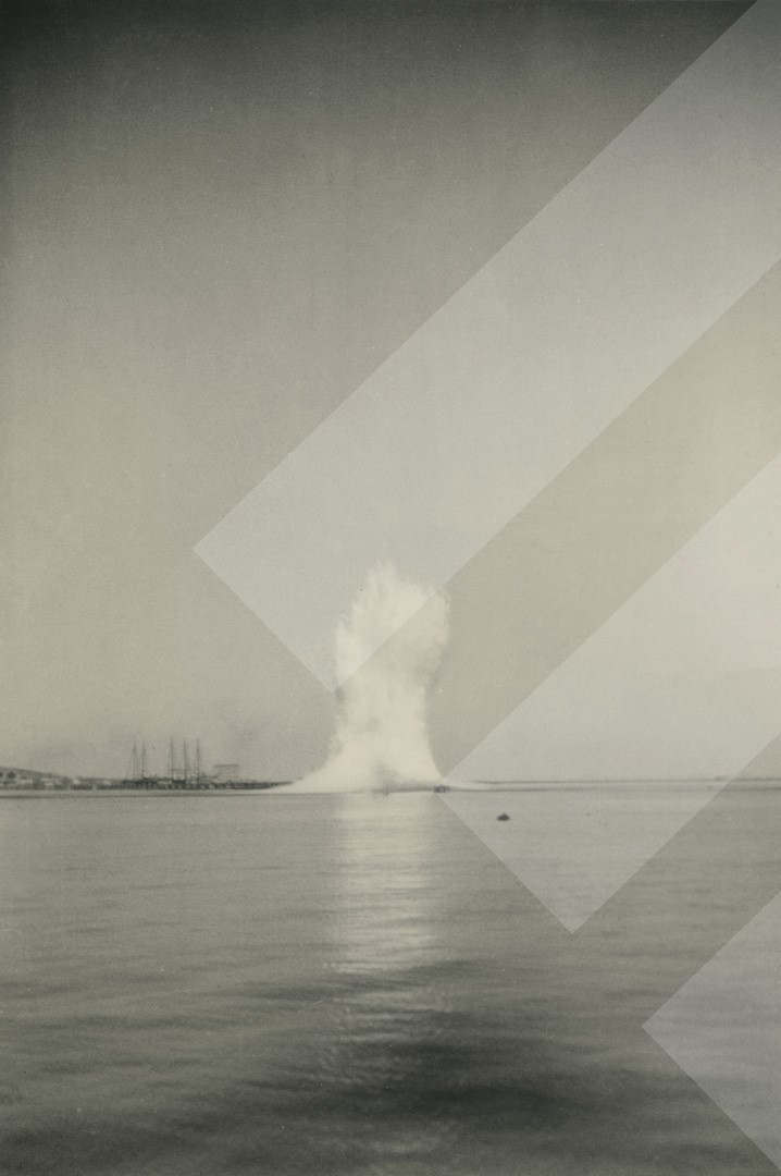 I panjohur , "", 1932 , , Shpërthimet për demontimin e mbetjeve të piroskafit "Lokrum" në port, , print në letër , 6 x 9 cm