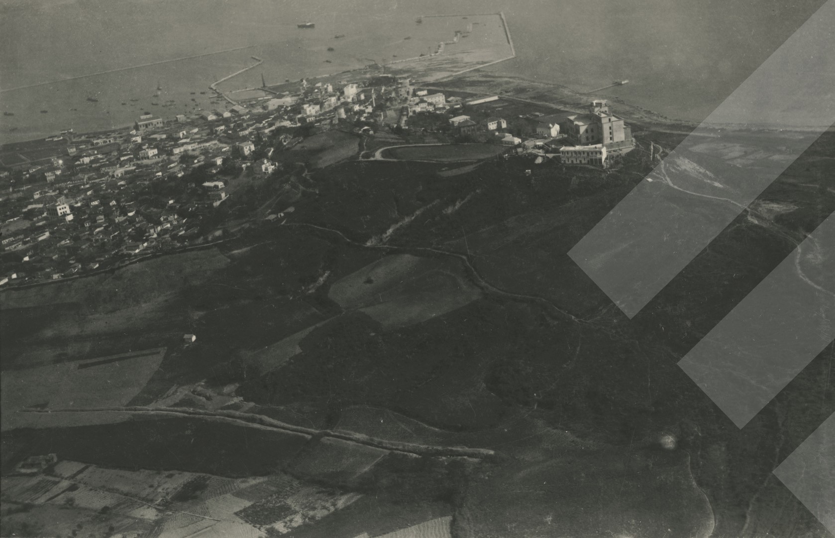 I panjohur , "", 1932 , , Pamja ajrore e qytetit të Durrësit, , print në letër , 14 x 22 cm