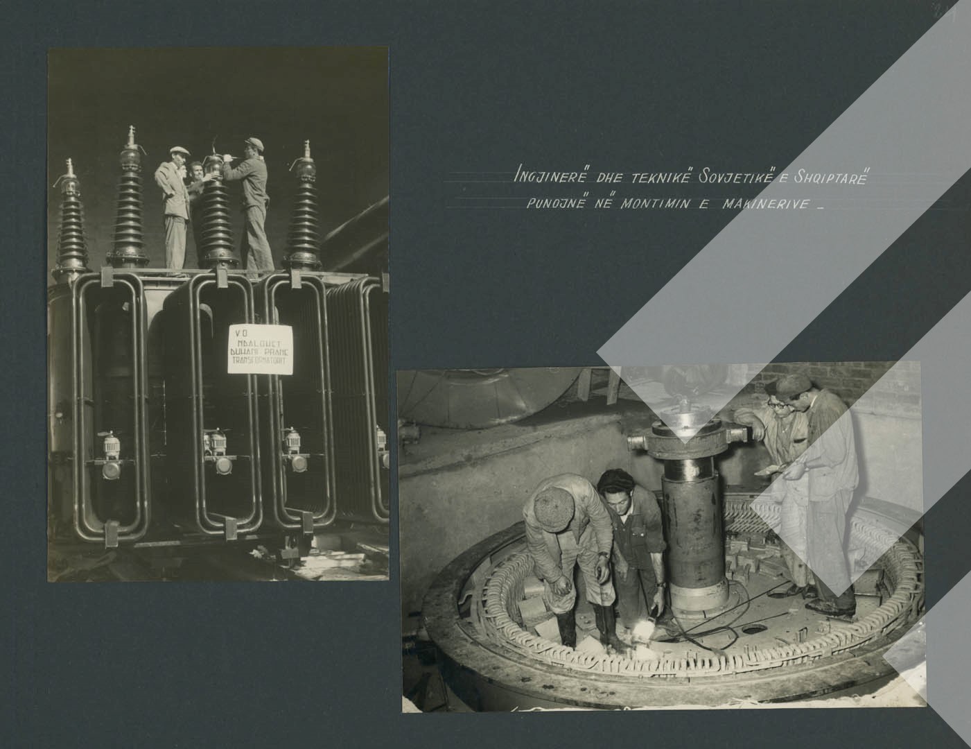 Jani Ristani, 1957 Inxhinierë dhe teknikë sovjetikë e shqiptarë në montim Print në letër, 10 x 15 cm.