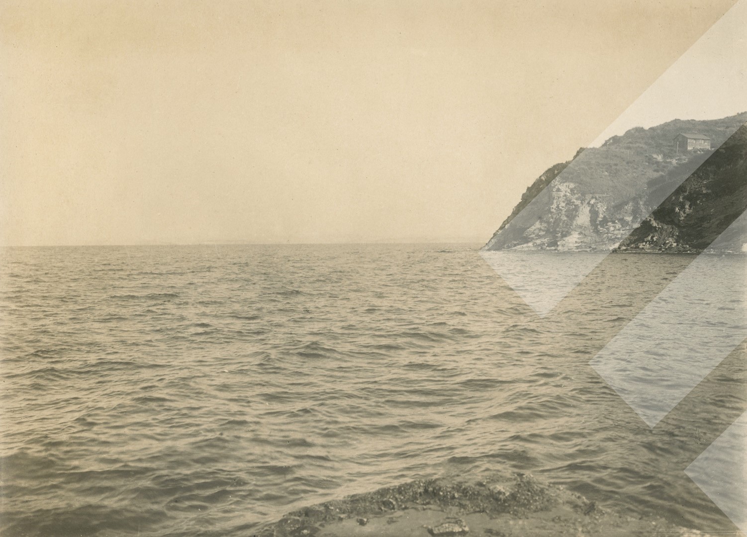 I panjohur, rreth 1916-1922 Pamje nga Sazani print në letër, 12 x 17 cm.