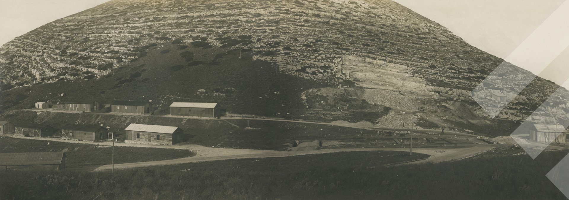 I panjohur, rreth 1916-1922 Pamje ndërtesash në ishullin e Sazanit print në letër, 16 x 46 cm.