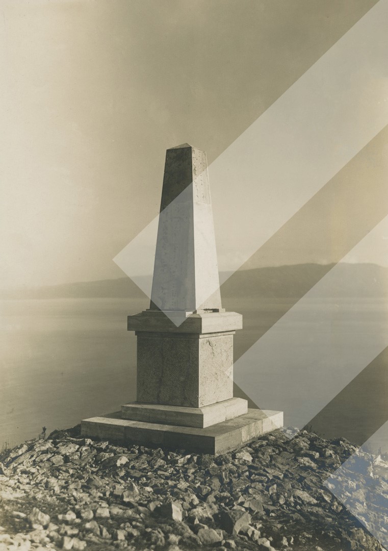 I panjohur, 1921 Përkujtimore e ngritur nga reparti i marinës së Sazanit me rastin e pesëvjetorit të mbytjes së anijes "Regina Margherita" më 1916. (shkatërruar nga regjimi diktatorial) print në letër, 17 x 23 cm.