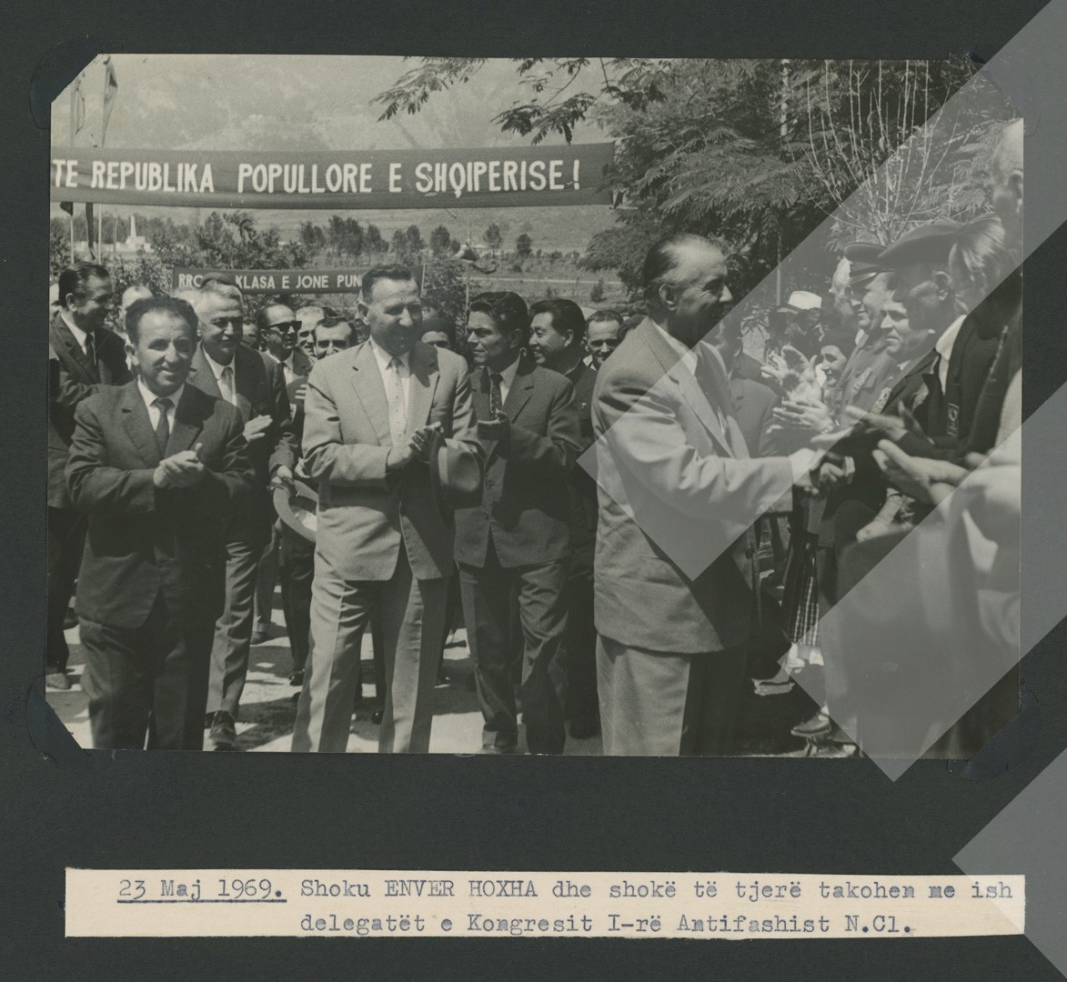 I panjohur, 1969 Takimi me banorët e qytetit të Përmetit print në letër, 13 x 18 cm.