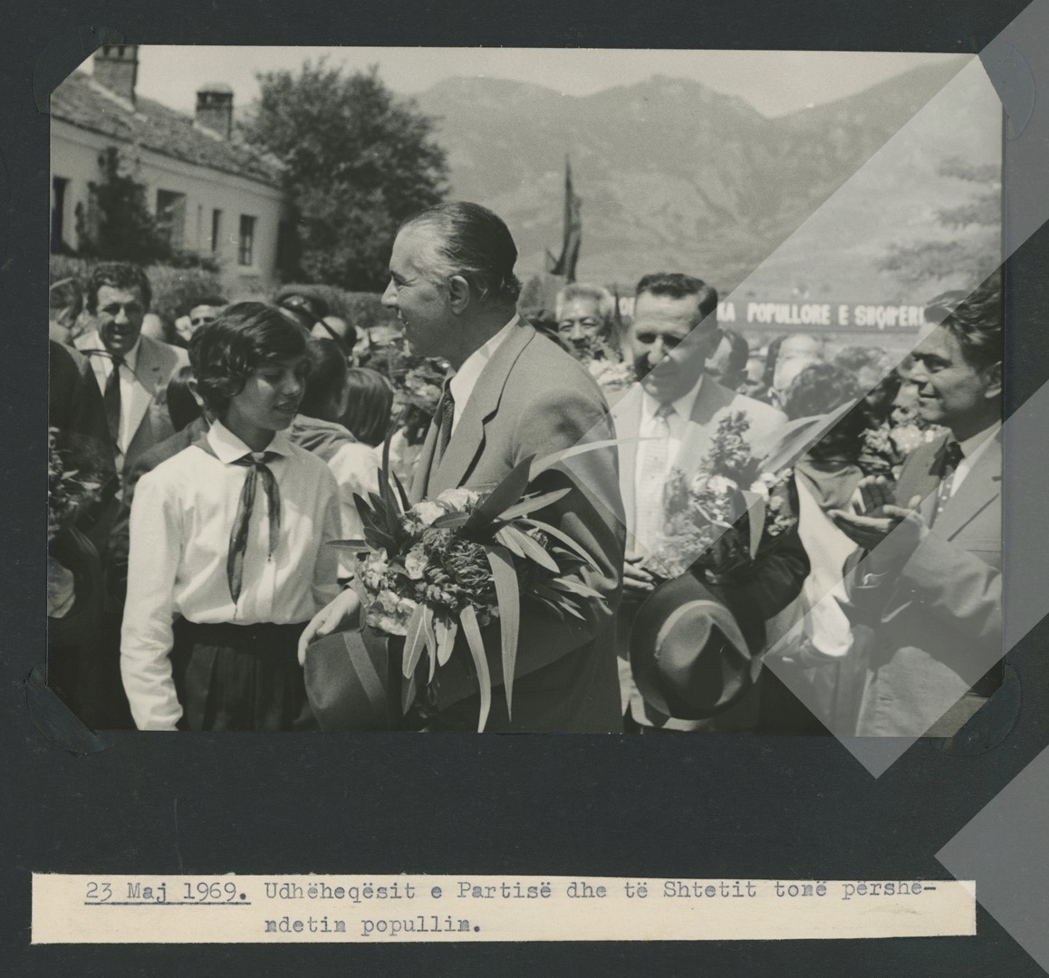 I panjohur, 1969 Antarët e byrosë politike përshëndesin banorët e qytetit print në letër, 13 x 18 cm.