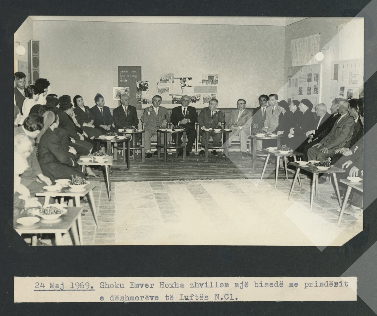 I panjohur, 1969 Bisedë me familjarë të dëshmorëve rint në letër, 12 x 18 cm.