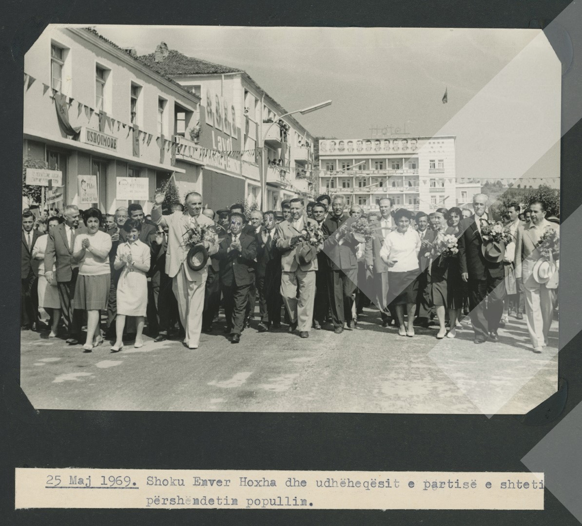 I panjohur, 1969 Duke përshëndetur popullin në përfundim të vizitës print në letër, 13 x 18 cm.