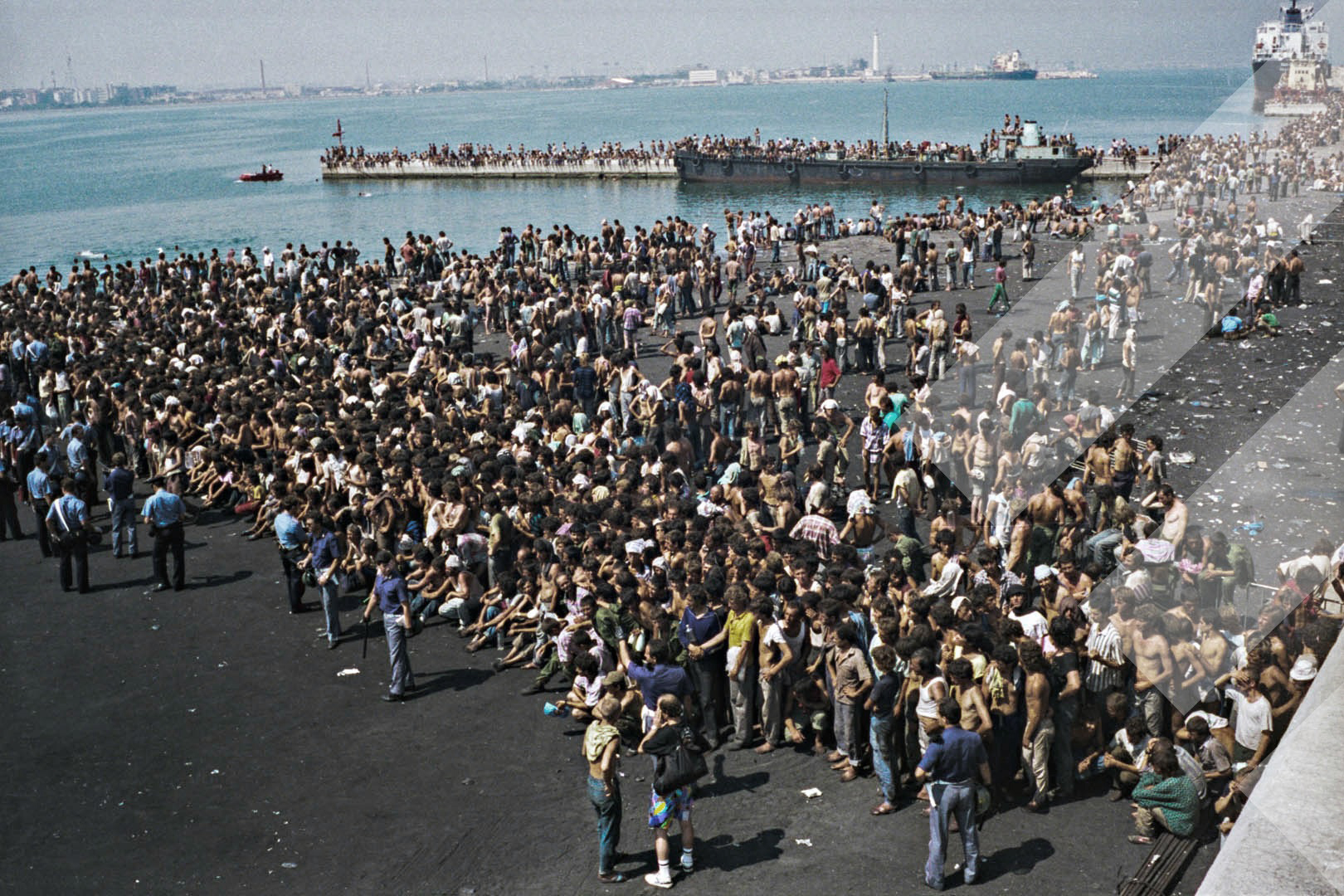 Giovanni Ruggiero, 1991, Refugjatët shqiptarë të anijes negativ, 35 mm.