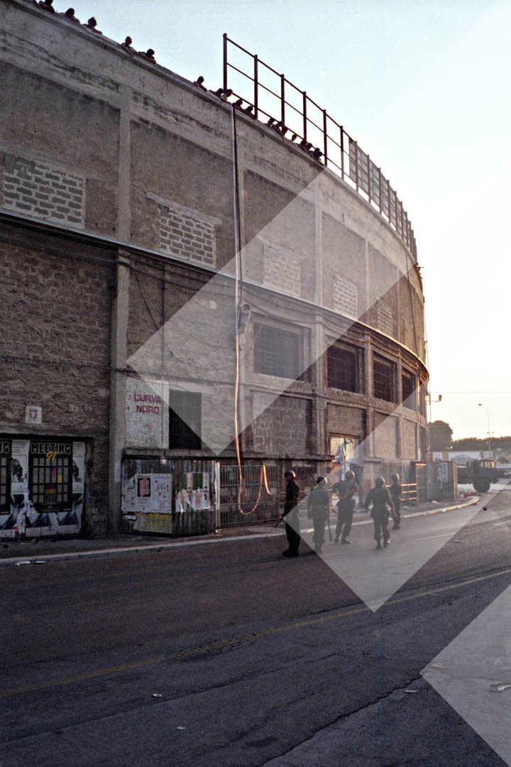 Giovanni Ruggiero, 1991, Mbyllja e refugjatëve shqiptarë në stadiumin e Barit, negativ, 35 mm.