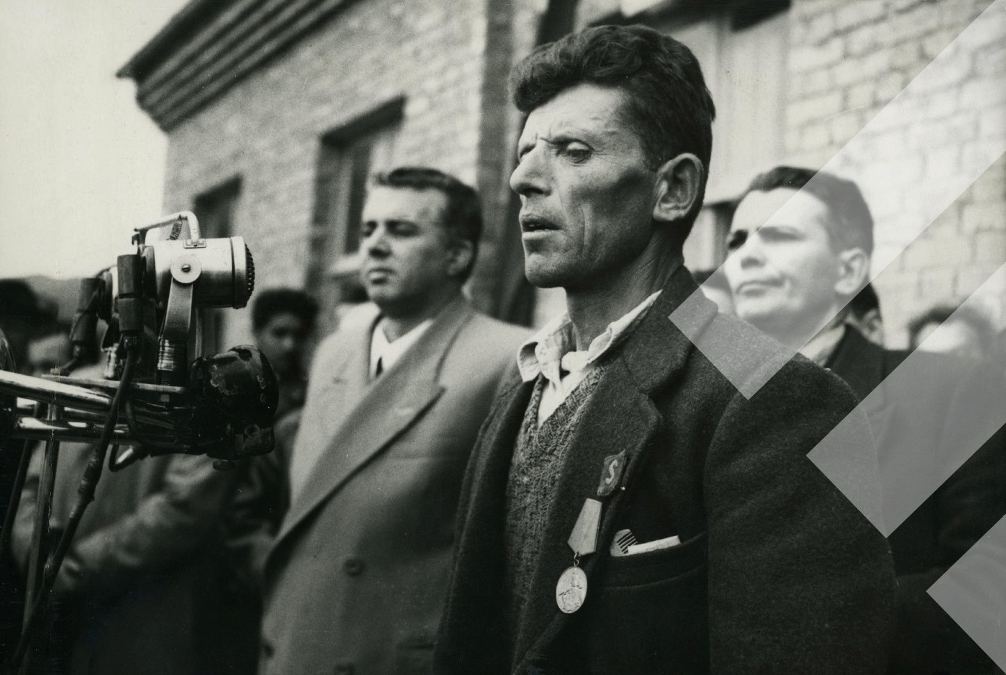 I panjohur, 1951 Folës në ceremoninë e inaugurimit të fabrikës së sheqerit "8 Nëntori" në Maliq të Korçës, Print në letër, 9 x 13 cm.