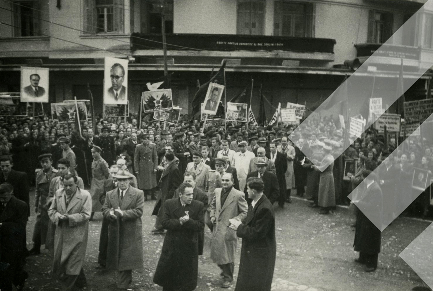 I panjohur, 1951 Tubim në Korçë me rastin e 10 vjetorit të themelimit të partisë Print në letër, 9 x 13 cm.