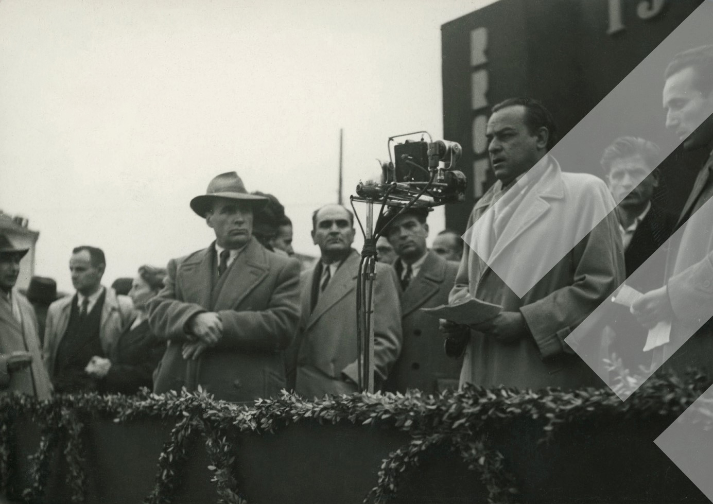 I panjohur 1951 Folës në tribunën e festimeve të 10 vjetorit të themelimit të partisë, Korçë Print në letër, 9 x 13 cm.