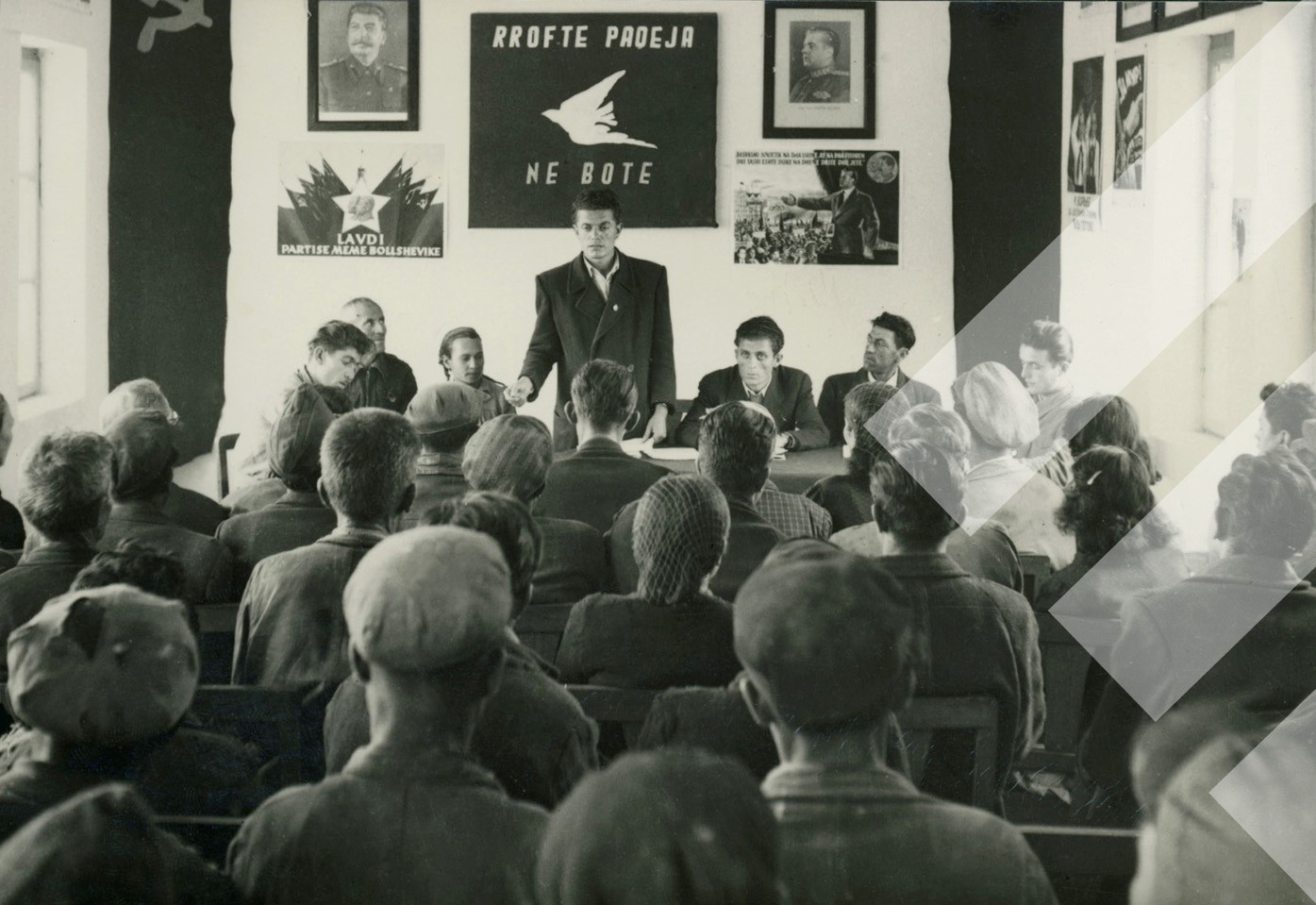 I panjohur, 1951 Mbledhje e kolektivi punonjës me rastin e 10 vjetorit të themelimit të partisë Print në letër, 9 x 13 cm.