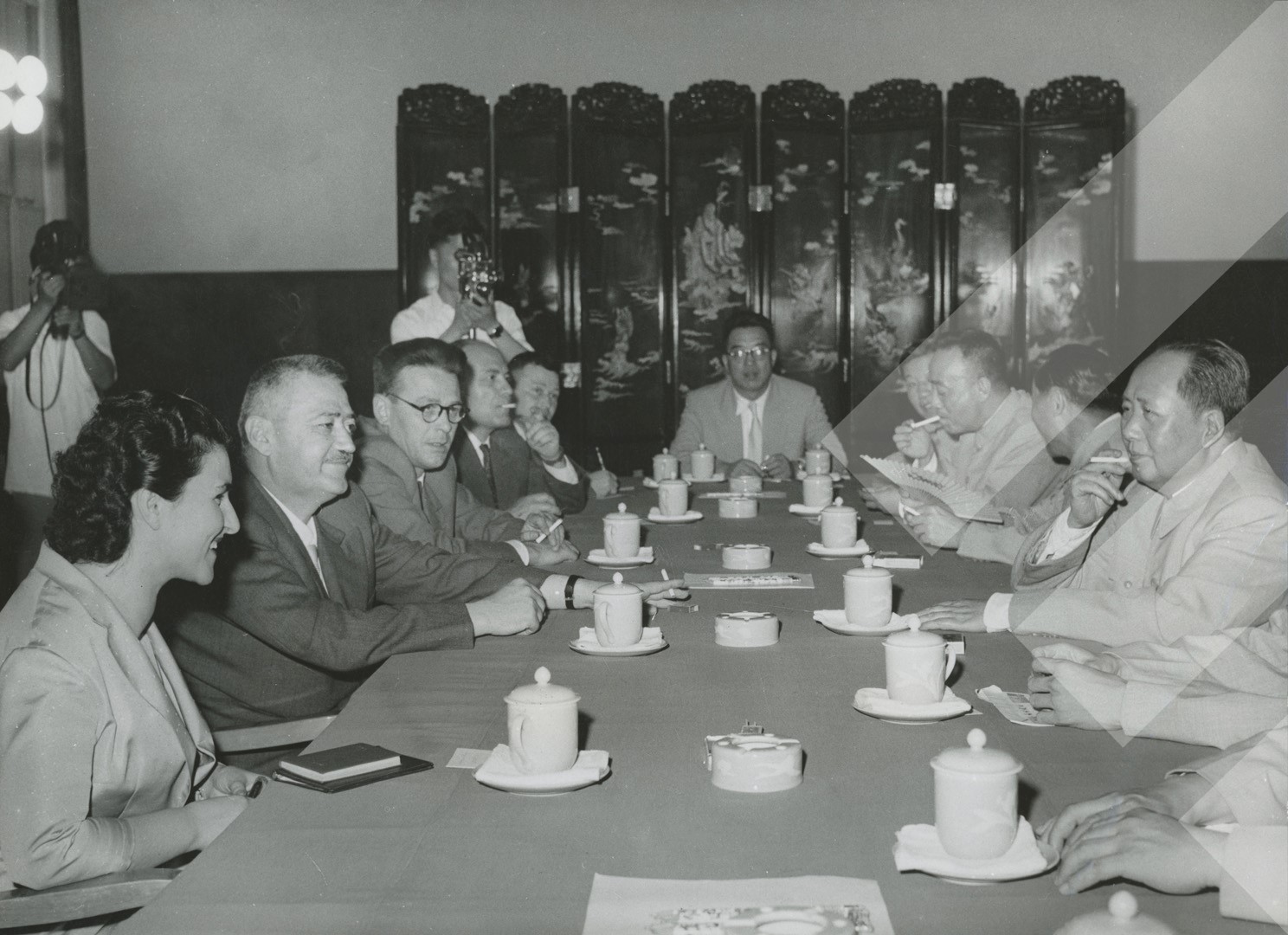 I panjohur, 1960, Delegacioni shqiptar në takim me Mao Ce Dunin print në letër, 15 x 20 cm.