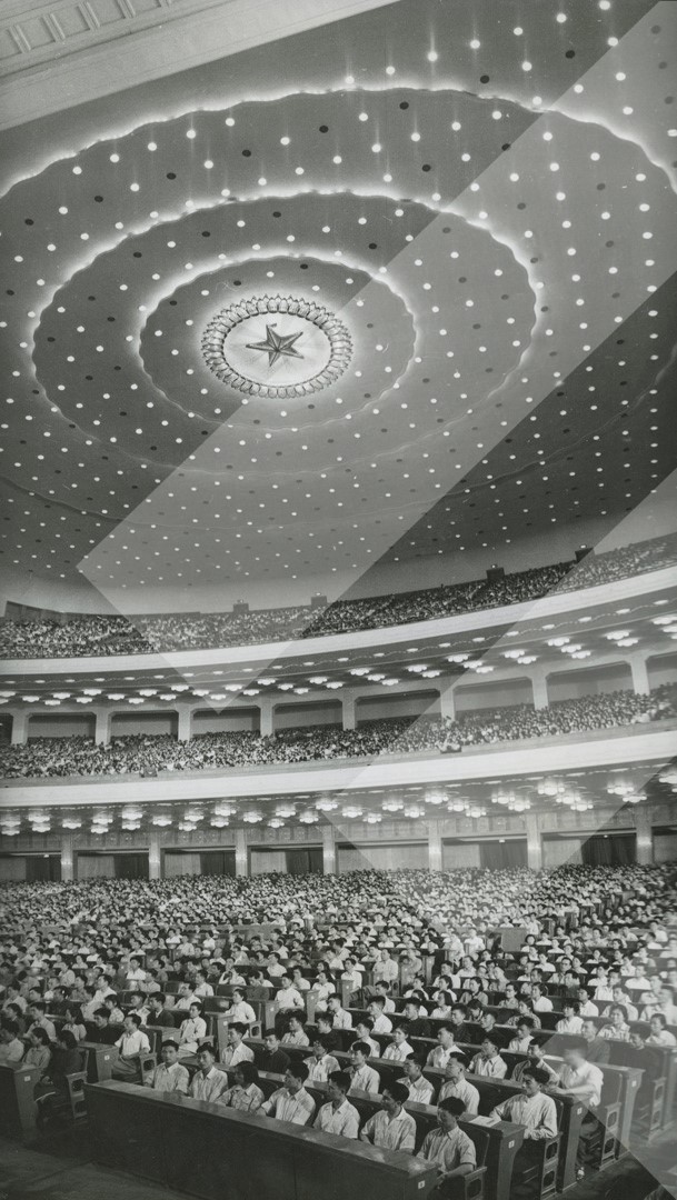 I panjohur, 1960, Tubimi i mirëseardhjes së delegacionit shqiptar me banorë të qytetit të Pekinit. print në letër, 12 x 20 cm.