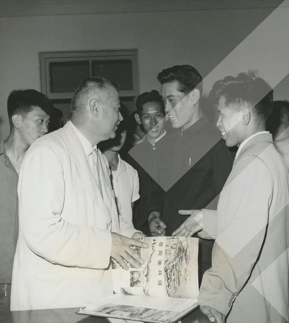I panjohur, 1960 Delegacioni shqiptar viziton sallën e leximit të punëtorëve në pallatin e kulturës, Shangai print në letër, 16 x 18 cm.