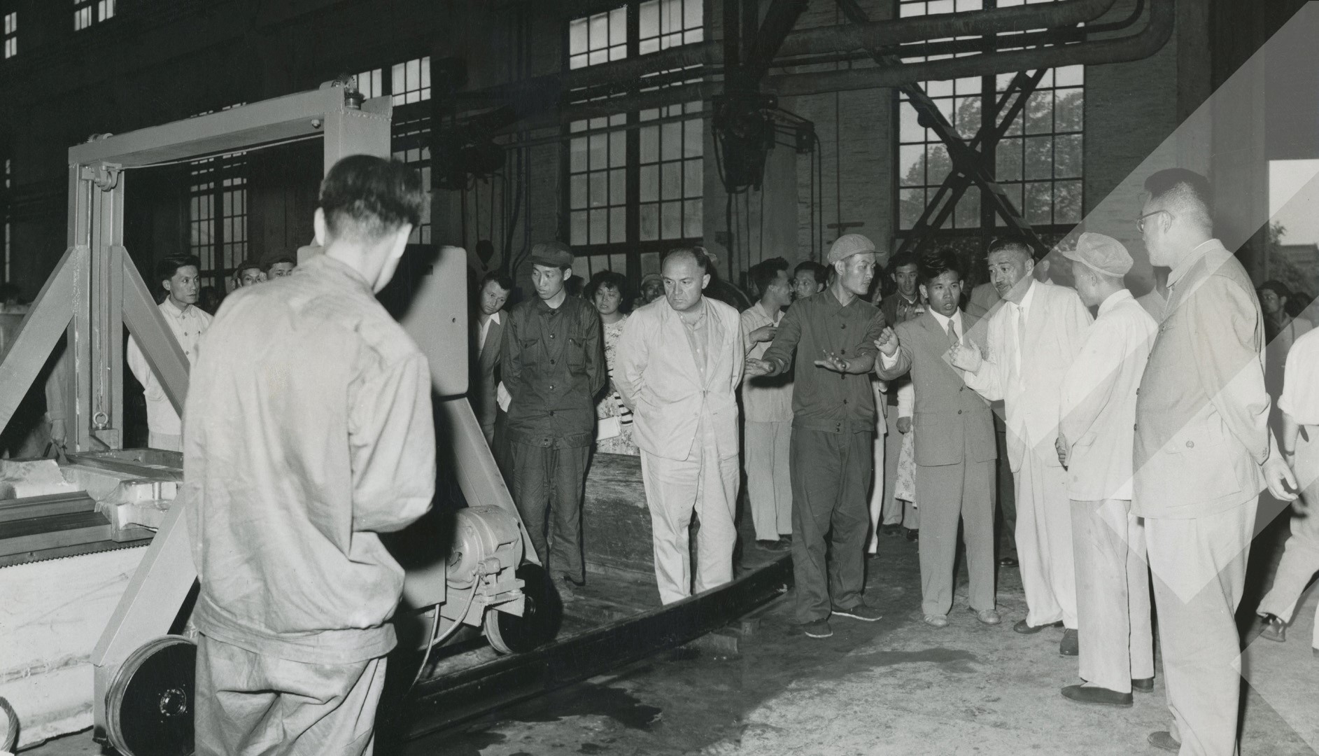 I panjohur, 1960 Delegacioni shqiptar viziton uzinën e parë të ndërtimit të makinave në qytetin e Shangait print në letër, 10.5 x 18 cm.